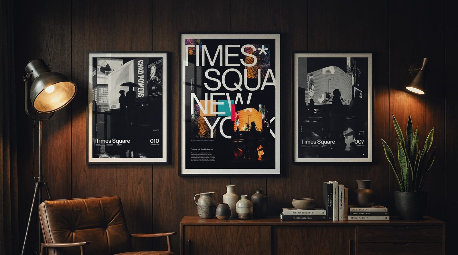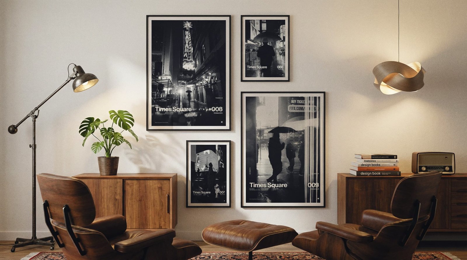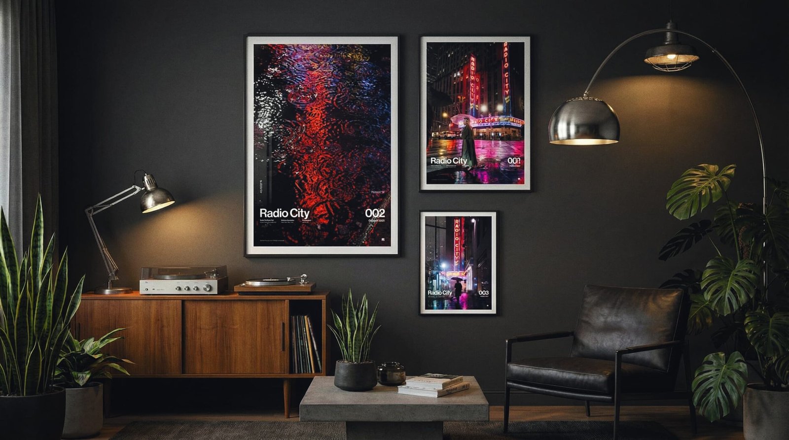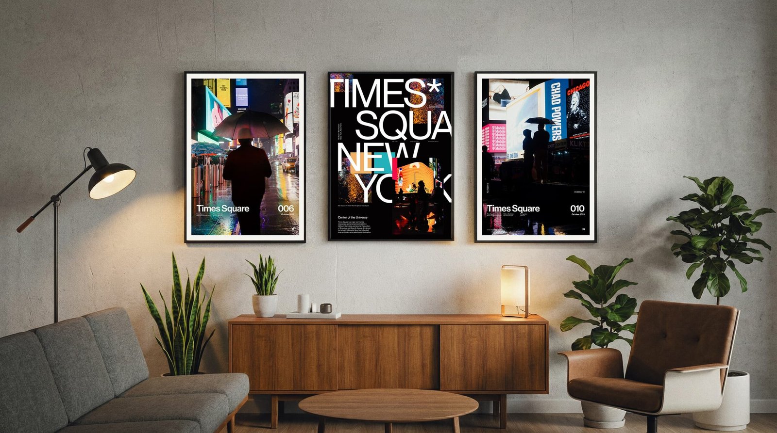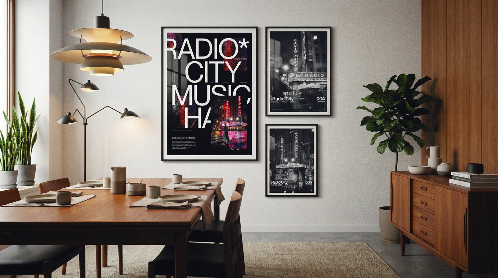 Hang the A1 first (left anchor). Set the A2 to the top-right with the same 2.75” gap, then stack the A3 below A2—keep the vertical gap identical so the right column reads clean and intentional.