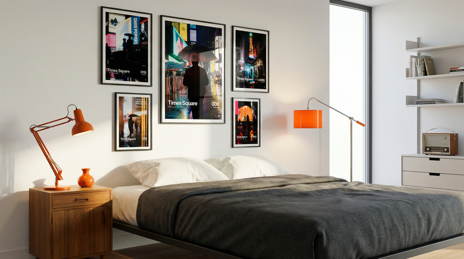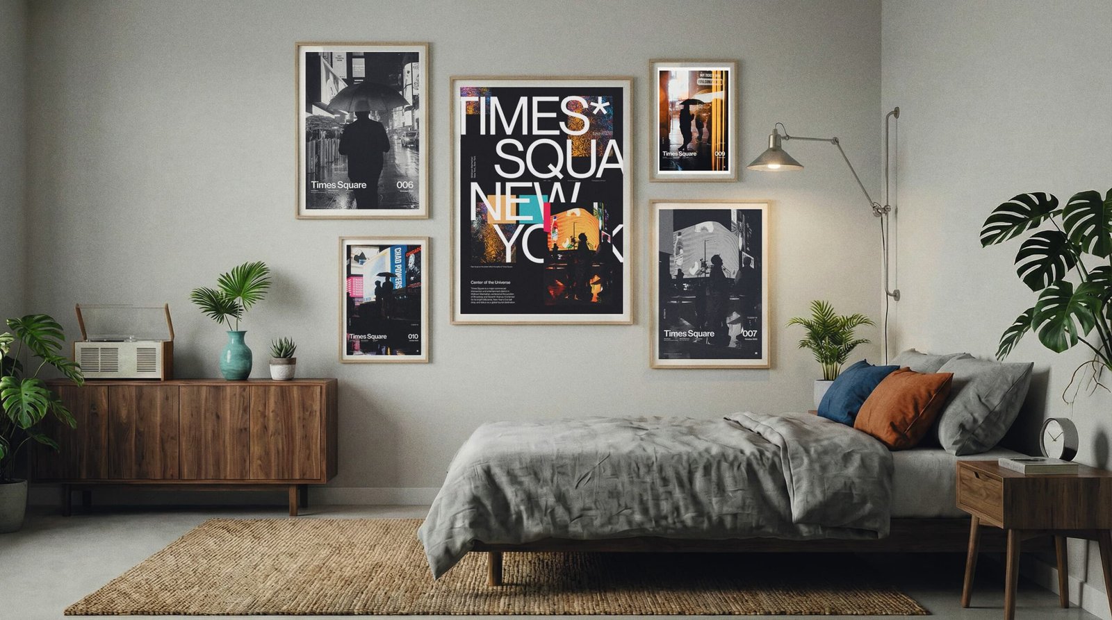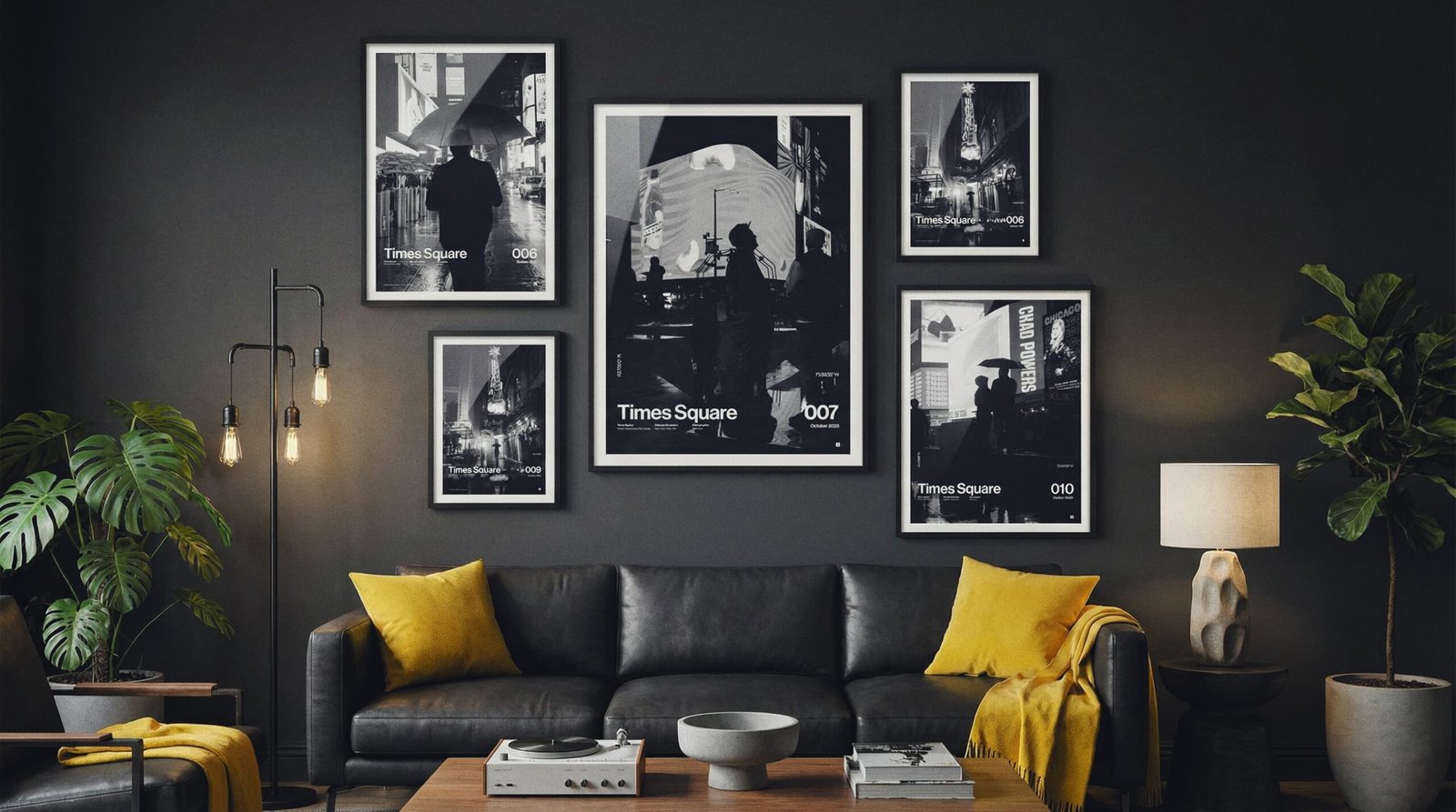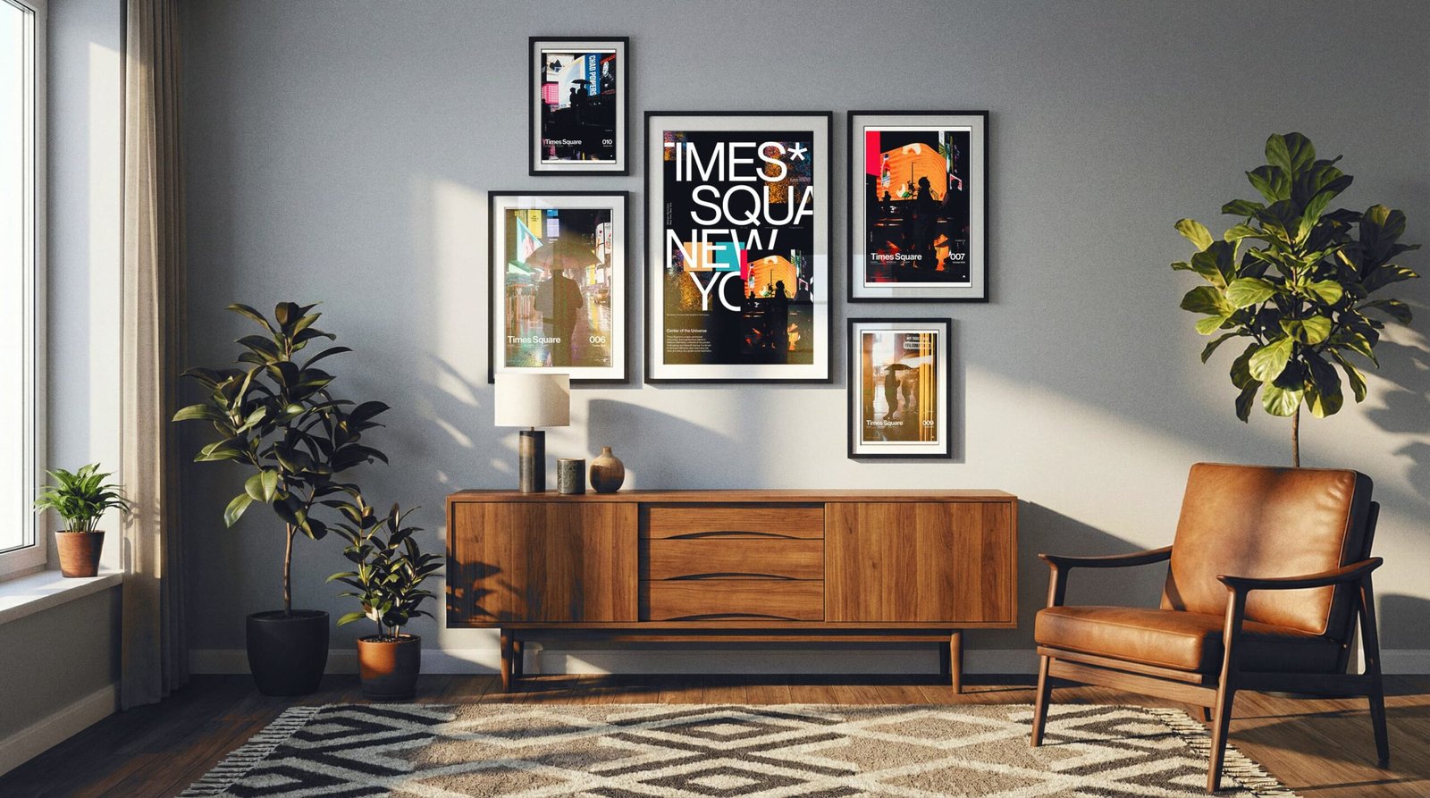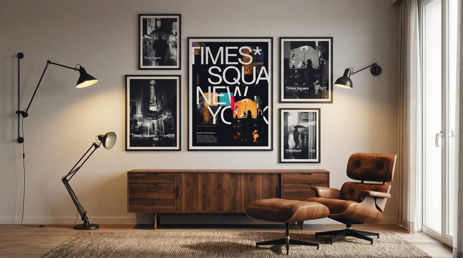 Hang the A1 first (left anchor). Set the A2 to the top-right with the same 2.75” gap, then stack the A3 below A2—keep the vertical gap identical so the right column reads clean and intentional.