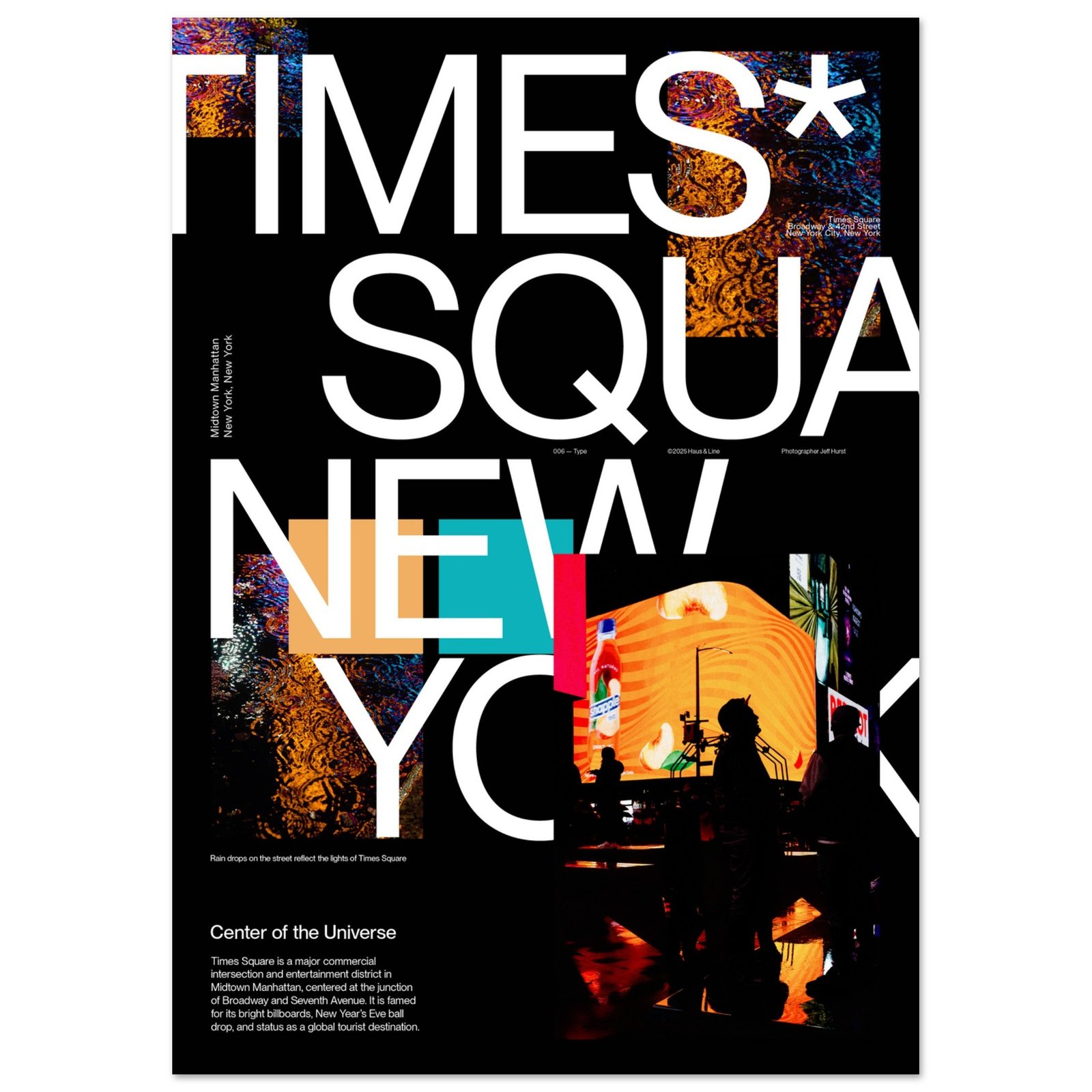 Hang Times Square 006 — Type next to Times Square 006 (Color) to turn one moment into a two-print system: image + structure.